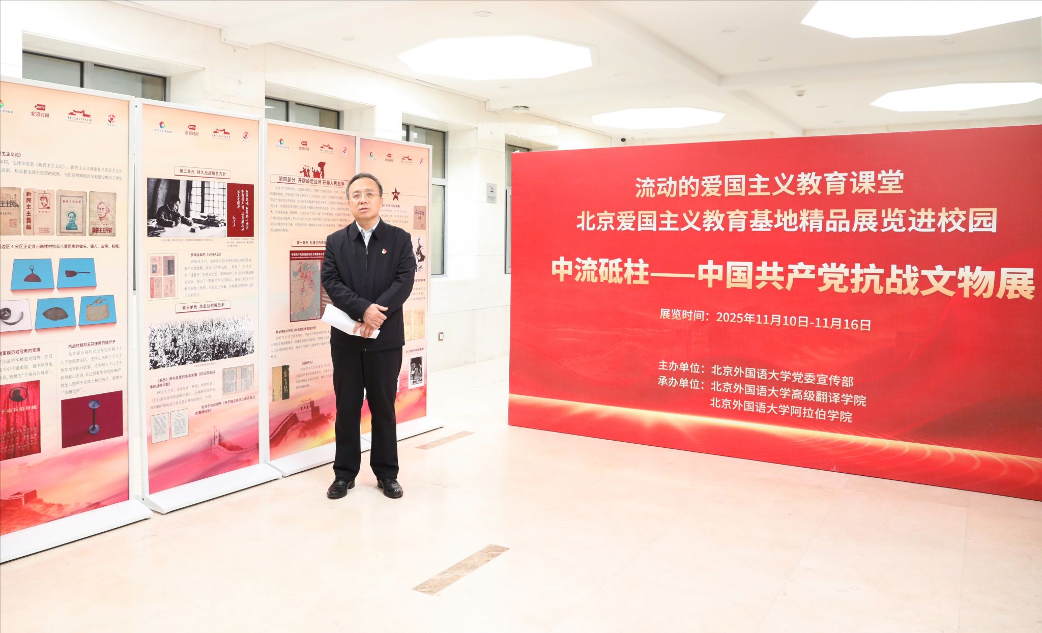 11月11日下午,由北京外国语大学党委宣传部主办,高级翻译学院与阿拉伯学院联合承办的“中国共产党抗战文物展”在阿语楼阳光厅开展。北京外国语大学党委副书记贾德忠出席开展仪式并致辞,我院师生党员及入党积极分子近50人参加了首场参观活动。