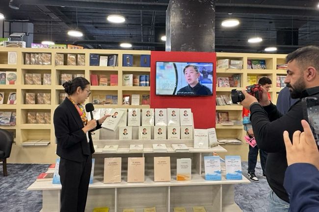 9月26日,中国参展代表团联合中国驻约旦大使馆,在中国展台精品出版物展览场地举办“习近平重要著作外文版推介会”。中国驻约旦使馆临时代办龚安民,约旦参议员、约中友协主席穆罕默德·达伍迪亚,文化部秘书长纳迪勒·艾哈迈德,约旦出版商协会主席、书展负责人贾比尔·阿布·法里斯等出席活动。推介会旨在为约旦及周边地区读者搭建一个深入了解中国思想、中国政策、中国发展道路的平台,助力中约及中国与阿拉伯国家的民心相通、文化交流。