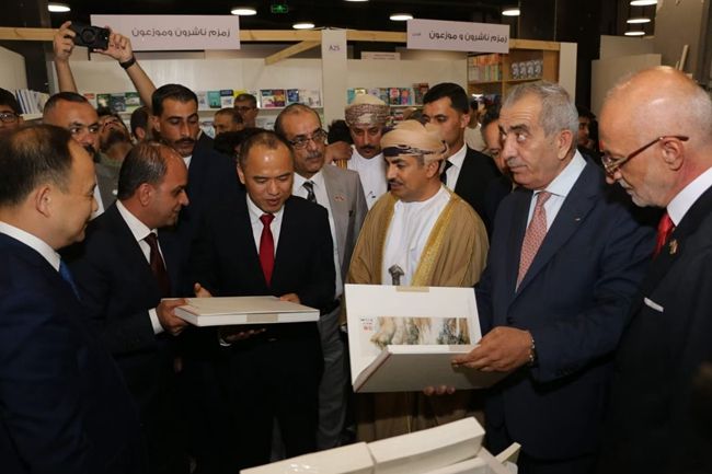 开幕式当天,约旦文化大臣穆斯塔法・拉瓦希德、阿曼新闻大臣阿卜杜拉・本・纳赛尔・哈拉西等嘉宾莅临中国展台。北外阿拉伯学院与北京师范大学出版集团作为中方参展代表,详细介绍了习近平总书记重要著作及“一带一路”中阿友好文库、中海人文交流和互鉴双语文库、中约经典著作互译项目等精品出版物。嘉宾们对中国代表团参展表示热烈欢迎,高度认可参展图书的文化价值,并对中阿出版合作的广阔前景给予充分肯定。中方参展代表向嘉宾赠送了《习近平谈治国理政》(第五卷)和“一带一路”中阿友好文库部分成果。