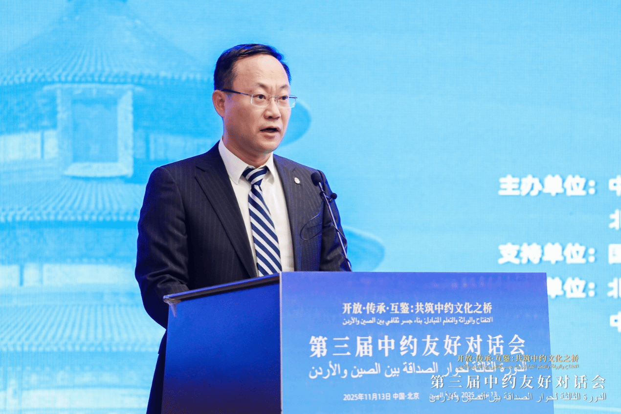 11月13日,第三届中约友好对话会在北京外国语大学举行。北外党委常委、副校长丁浩,中国外文局副局长余应福,约旦驻华大使胡萨姆·侯赛尼,中国驻约旦大使郭伟致辞。约中友好协会主席贾迈勒·达穆尔、国家开发投资集团有限公司新闻发言人张亮作主题发言。本届对话会以“开放·传承·互鉴:共筑中约文化之桥”为主题,来自中国、约旦、埃及等多个国家和地区的高校、企业、政府机构代表共200余人参加活动。