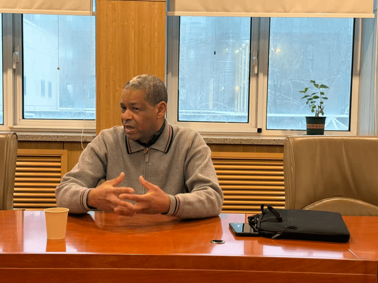 2025年12月12日下午,阿尔及利亚作家萨迪克·哈吉·艾哈迈德为学院师生带来以“萨迪克·哈吉·艾哈迈德小说中的沙漠与非洲”为题的精彩讲座。本次讲座由我院副院长尤梅教授主持,薛庆国教授出席,来自北京外国语大学、北京大学和北京语言大学的阿拉伯语专业学生到场聆听。