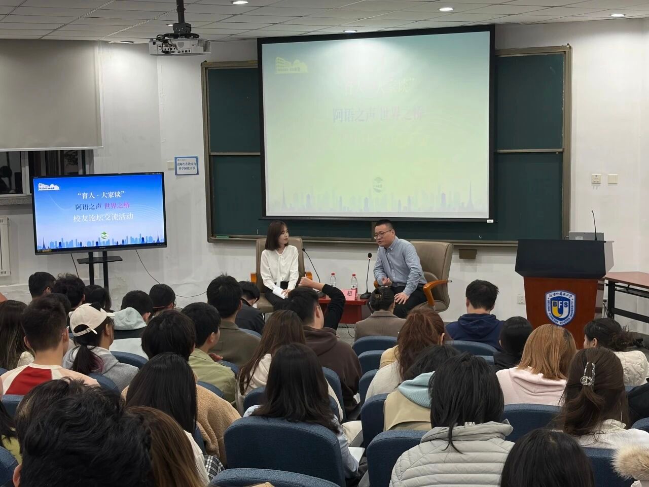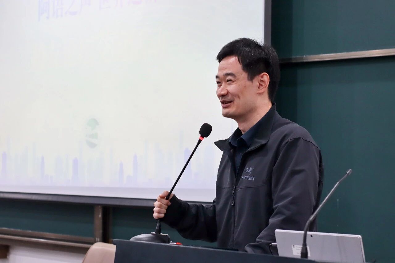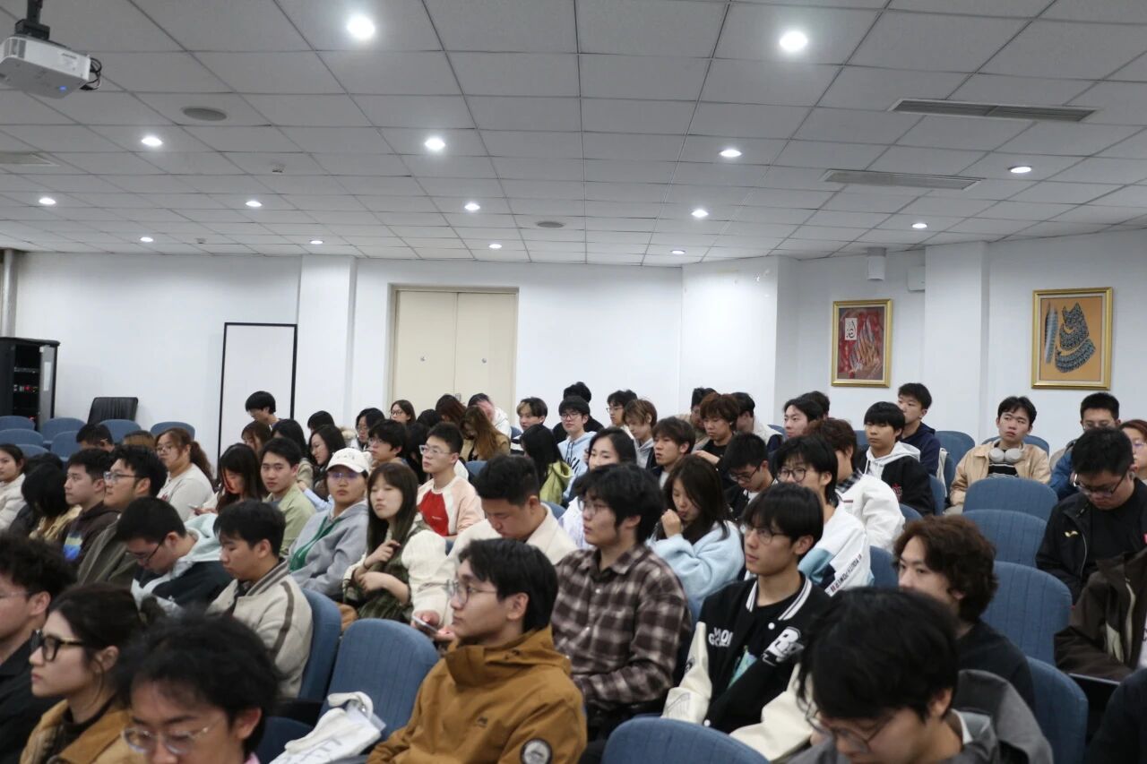 访谈伊始,杜超学长以风趣幽默的方式迅速拉近了与同学们之间的距离。他结合自身多年在国际传播领域的工作经历,围绕学习阿语的意义、人工智能环境下的阿语学习者应对策略及职场实战经验等内容,为同学们带来三剂“强心针”:一是树立专业自信,深入学习阿拉伯文化,以扎实的语言技能构筑核心竞争力;二是停止彷徨与内耗,在脚踏实地中坚定前进方向;三是坚守人文底色,在人工智能技术快速发展的时代,践行人文交流,坚守人文价值。杜超学长娓娓道来,既有思考的深度,又不乏真诚与温暖,引起同学们的广泛共鸣。