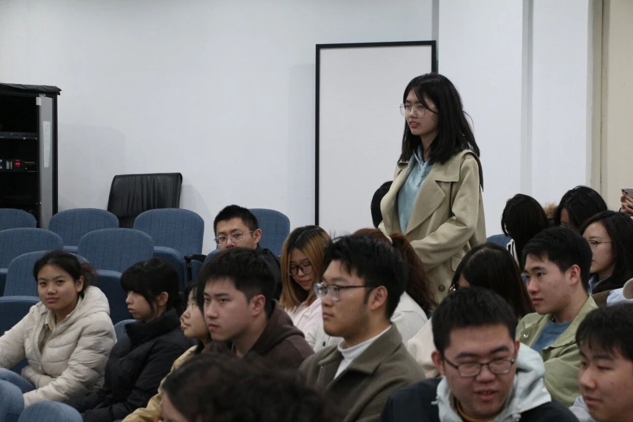 问答环节,同学们围绕当下的学习困惑与未来的职业规划向四位学长学姐请教。学长学姐们结合自身的学习状况、成长轨迹,聚焦“从学生到职场人的身份转变”“如何在忙碌的工作中实现自我提升”“如何面对复杂任务压力”“平台对于个人发展的重要性”等话题,耐心细致地为大家答疑解惑,提出建议,令同学们受益匪浅。